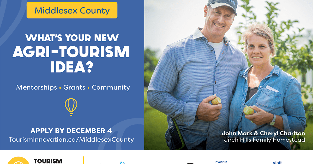 Applications for the Middlesex County Agritourism “Spark” Program are open until December 4, 2025. A program information session will be hosted online on November 19, 2025, at 1:00pm EST. Additional information about the program is available on the program webpage: www.tourisminnovation.ca/middlesexcounty