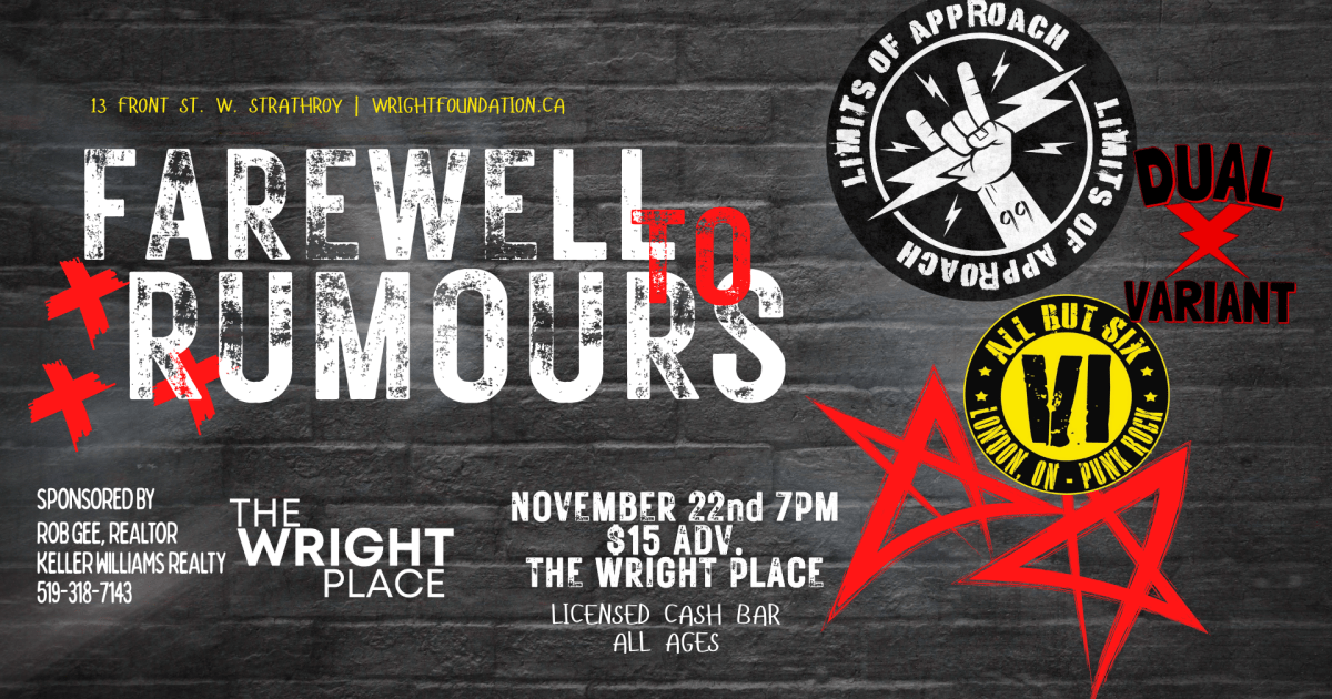 Join us for an unforgettable evening of live music featuring local bands in the old Rumours building. This venue is soon to be transformed into The Wright Place, an arts centre and theatre, but tonight, we celebrate the nostalgia and say Farewell to Rumours.