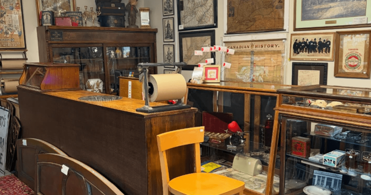 We are an antique shop specializing in vintage glass, local historical items, ephemera, furniture and more!
